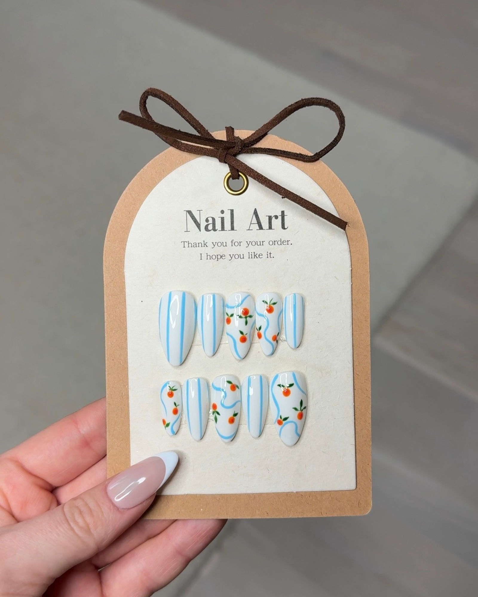 Käsin geelilakalla valmistetut press on -kynnet, jotka näyttävät ja tuntuvat salonkilaatuisilta.